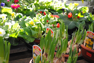 okay, so the dress has very little to do with daffodils, other than the fabric has a little yellow in it & this little pot of beauties is on the widow sill next to my sewing machine,